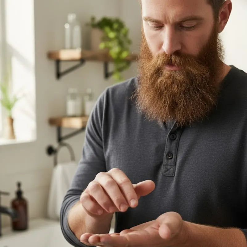 - Apply: Work the balm evenly through your beard, starting at the roots and moving out to the tips.